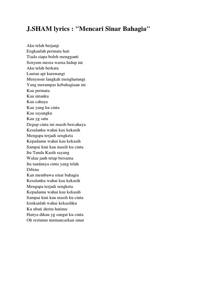 Lirik Lagu J Sham Mencari Bahagia Pdf